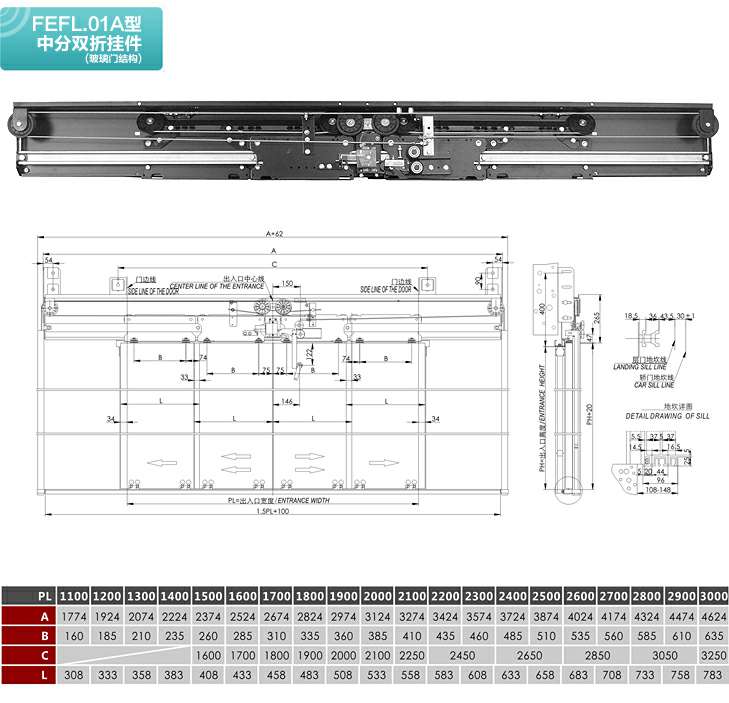 FEFL.01A型中分双折层门装置(玻璃门结构)